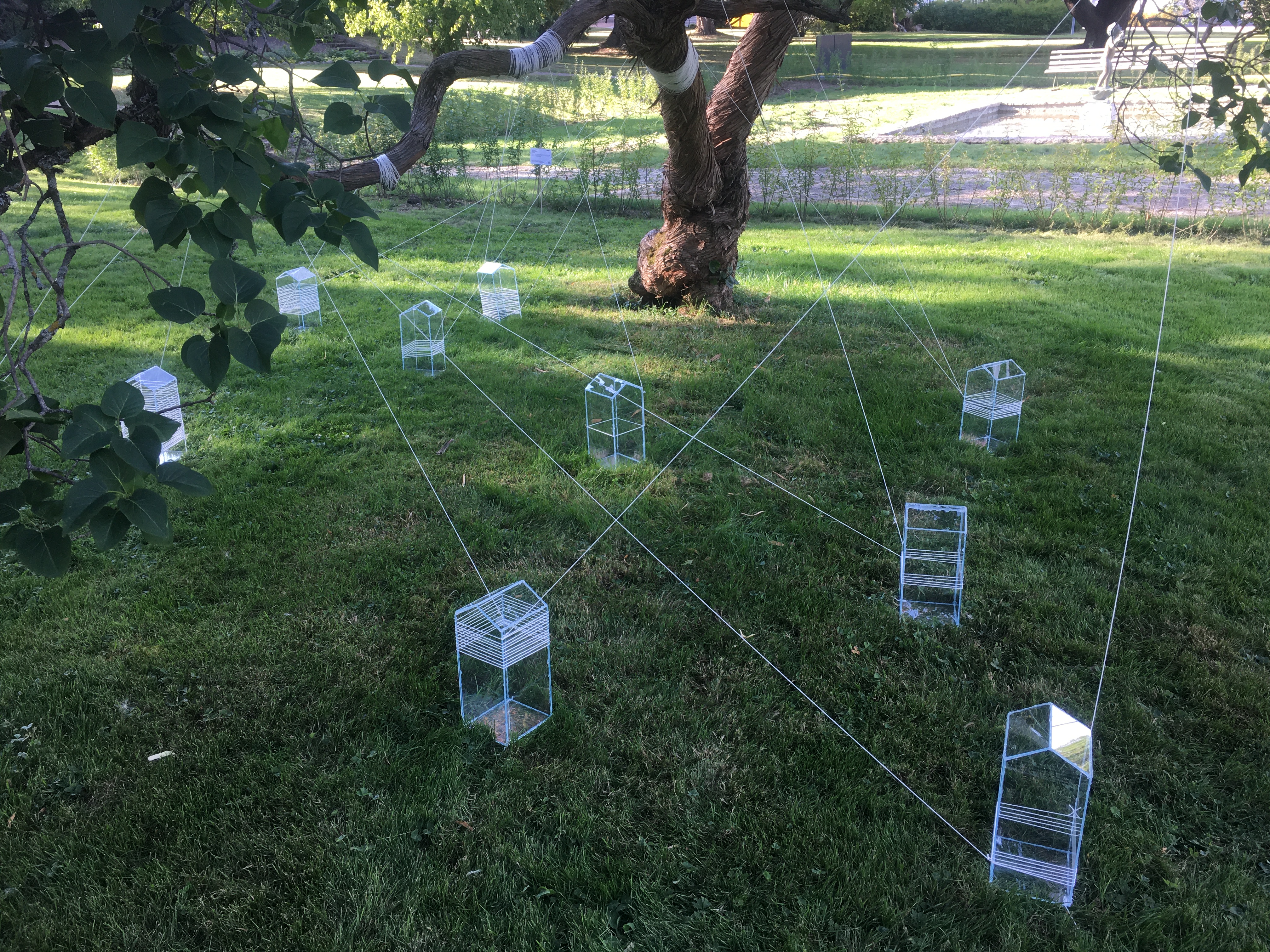 Deltog med installationen VOID /Tomrum, mellanrum, som bestod av 10 plexiglashus med trådar virade runt huskropparna och grenen på ett gammalt syrenträd som hänger ovanför husen. Trådarna löper som ett nätverk mellan husen och trädet. En del har många kontakter och andra bara några få.