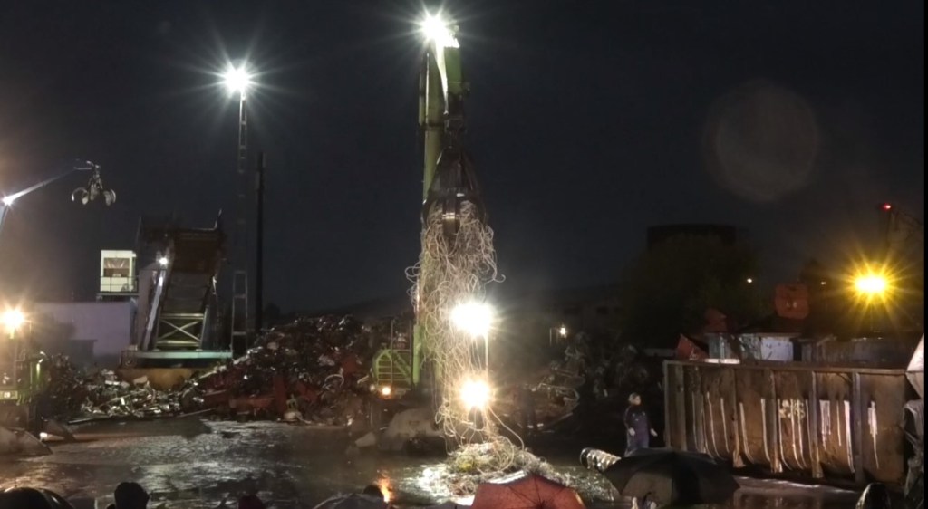 SU-EN Butoh Company, gästkonstnärer, musiker, skrotarbetare och kranförare skapar tillsammans ett gränsöverskridande och sprakande evenemang på Skrotcentralen i Uppsala 29 augusti 2020.